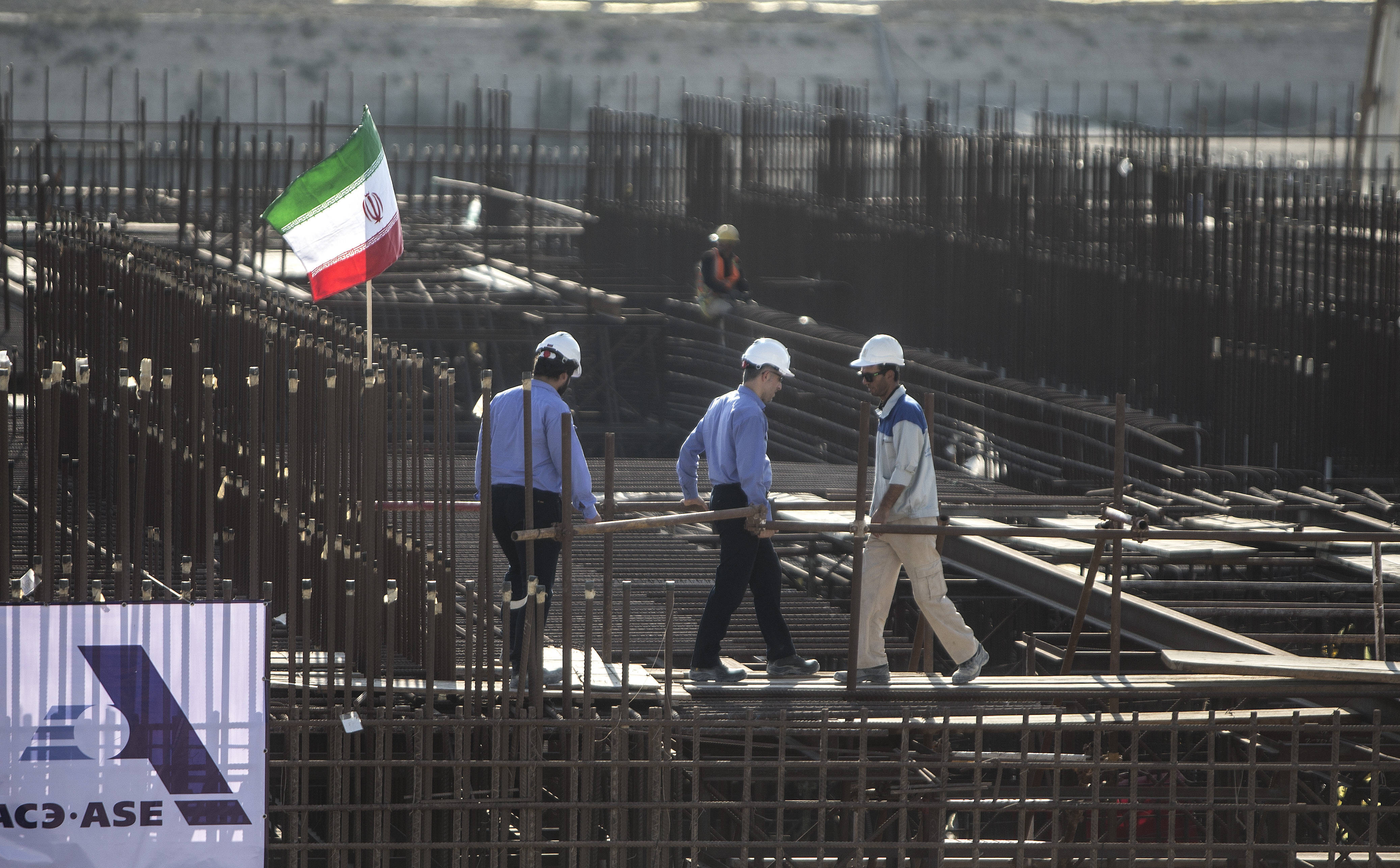 2019年11月10日,工人在伊朗布什尔核电站二期工程现场工作。新华社发(艾哈迈德摄)声明说,布什尔核电站厂区内一座建筑附近遭袭,地点与正在运行的核电机组“距离极近”。目前,布什尔核电站周边辐射水平正常。