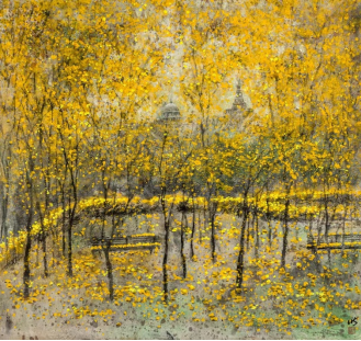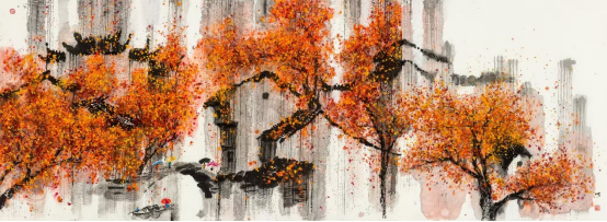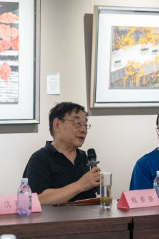 我会把大家的评价当作鼓励,当作今后努力的方向。我五岁受庭训,父亲叫我背唐诗宋词,背《古文观止》,画《芥子园画谱》,学素描和油画。父亲是民国时期比较出色的诗书画高手,故我比较重视综合修养和诗性描述。我的画是从诗歌里走出来的,是先有意境,再画画。在技巧上我喜欢古法用笔,喜欢传统的、丰富的墨法,喜欢印象派的光影、光色,喜欢现代设计和构成。我说过,我的故事才刚刚开始,我的风景才刚刚展开。我还在学习、探索中,这次研讨会使我看到了发展方向,我会更努力、更努力。