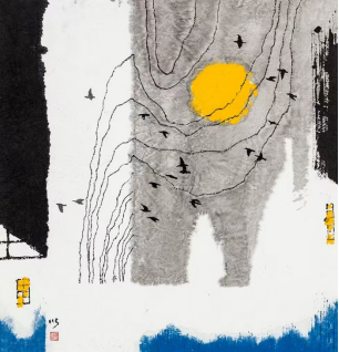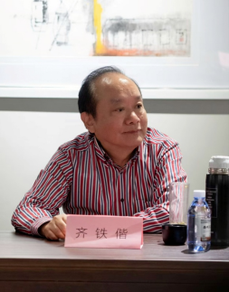 乐震文(上海觉群书画院院长):齐(铁偕)老师是一个很了不得的人。他是一个报人、诗人、作家,本以为他画画是玩玩的票友,但他把我们长期搞专业的人都玩到外面去了。我觉得能从他的画中读出诗意,从他的诗意中,又可以看到艺术的形象。他从诗出发、从文学出发,找到了自己一个比较完整的绘画的方式。更令我感动的是他在画的内容、形式和材料方面,都做了自己的探索,每一张画都用足了脑筋,而不是一般地凭着惯性画。