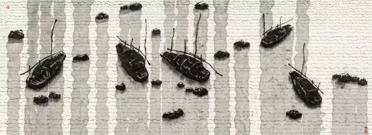 其次是展览的主题“水做的江南”,上海有很多高楼大厦,川流不息的人群和车辆,江南在哪里呢?看了齐先生的画,能让我感受到,我们又找到了江南,通过他的画营造出的一个江南。画里的船特别多、雨特别多,不管是河上的船,要出远门的游子,还是回归的游子,还是绿油油的草和金黄的树,营造出一种水做的江南独有的氛围。