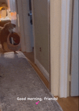 每天视频的开头,就是伴随着乒乒乓乓翻东西的声音,凯茜夹着嗓子问:“杜克,宝贝,你在干什么呢?”然后镜头对准门口,就像开盲盒一样,等着看杜克每天拿着啥东西到自己的小床上。