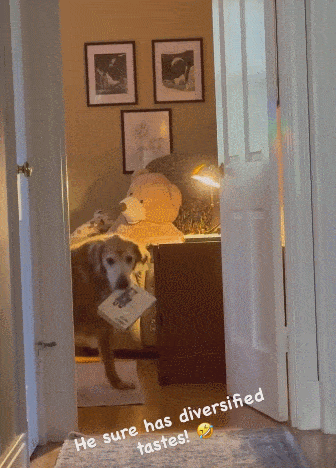 “大多数情况下,只要给它一点空间就好了。它每天会偷三到七件物品,它对人类的物品大多都很温柔,但它会破坏所有的狗玩具。”