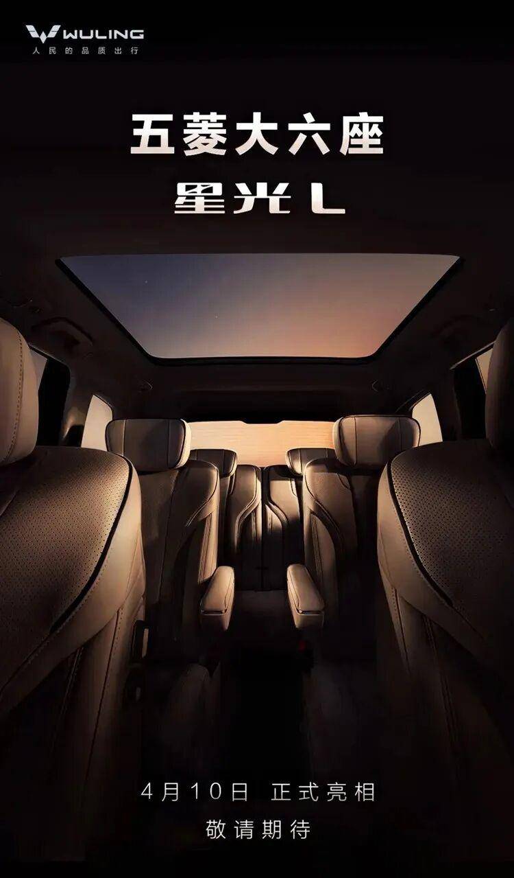 根据官方信息,五菱星光L将于4月10日正式亮相,新车定位中大型SUV,采用1.5L插混系统,并提供5座和6座版本选择。