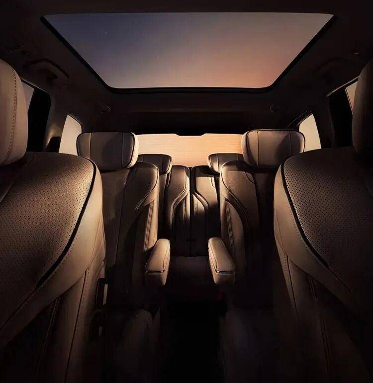 新车会提供5座和6座两种座椅布局,从官方发布的6座版本的预告图来看,其二排采用独立座椅+独立扶手,三排两个座椅也带有独立头枕,且头顶上还有一块大尺寸的天窗。
